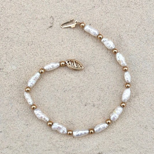 14K Yellow Gold Fresh Water Pearl Bracelet