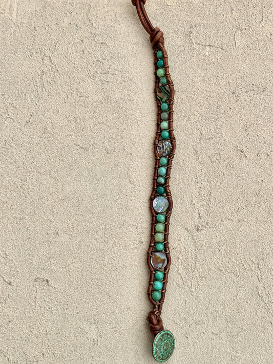 Abalone Shell and Stone Leather Wrap Bracelets