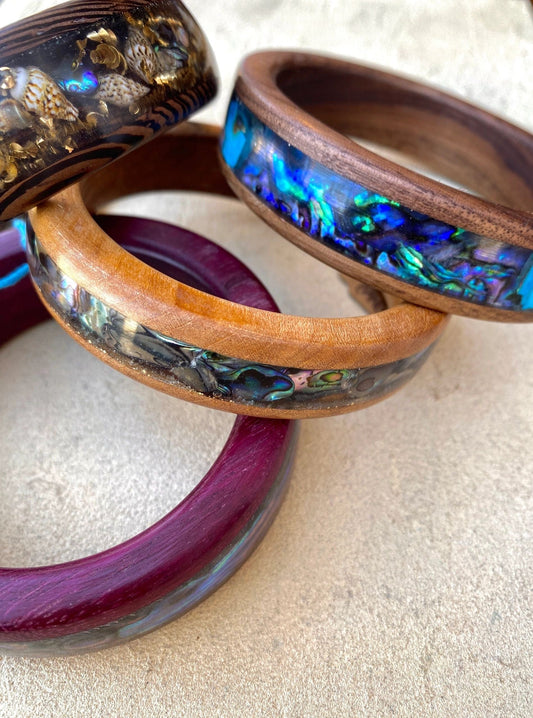 Hand Turned Wooden Bangles with Shells