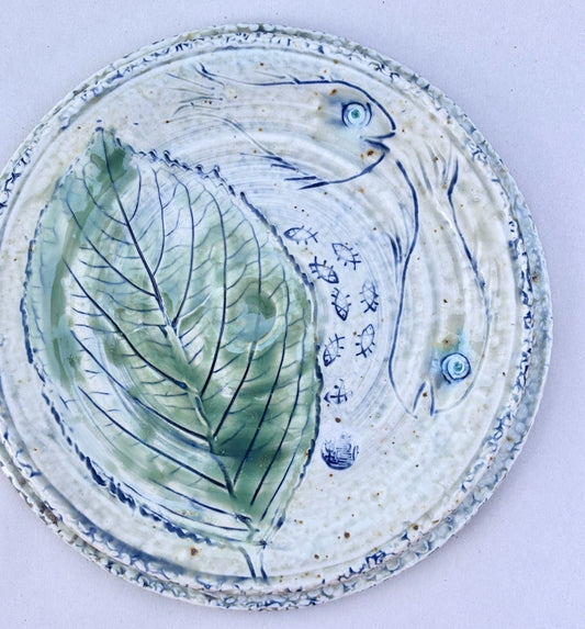 "Leaf-Fish " Porcelain Dinner Plates - 9.25"