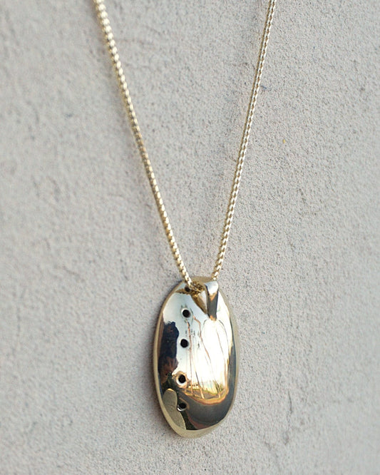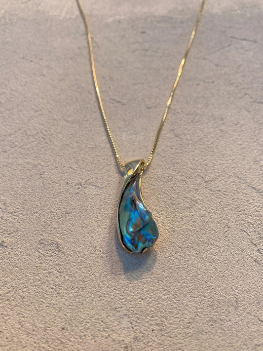 14K Yellow Gold Abalone Shell with Rare Green Abalone Pearl Pendant