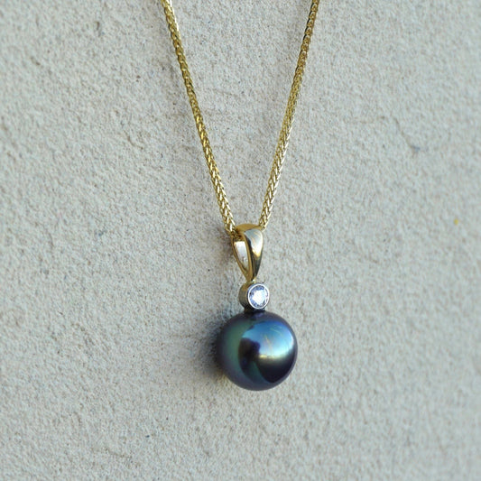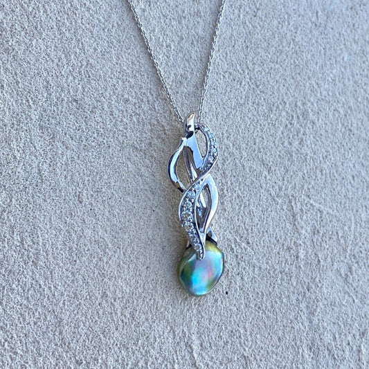 14K Rose Gold Abalone Shell with Rare Green Abalone Pearl Necklace