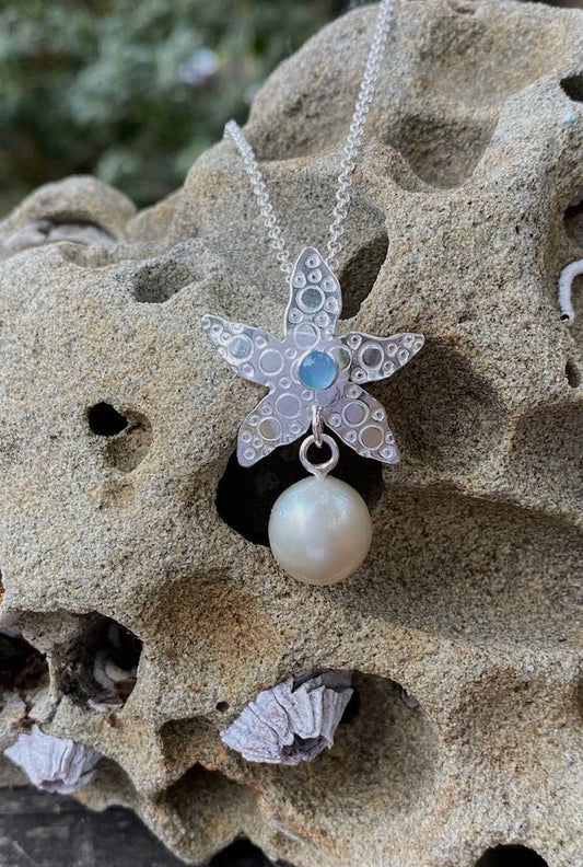 Moving Starfish Pendant on Gaspite Stone Necklace