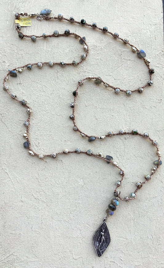 Fine Silver Casino Mermaid Pendant on Beaded Necklace