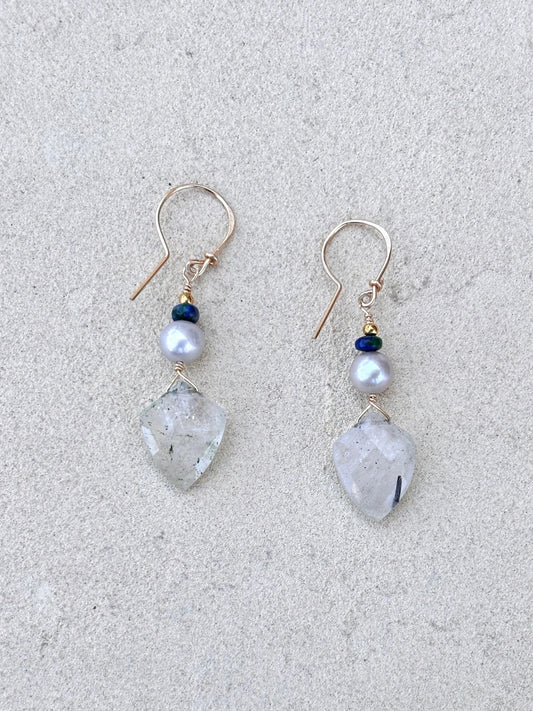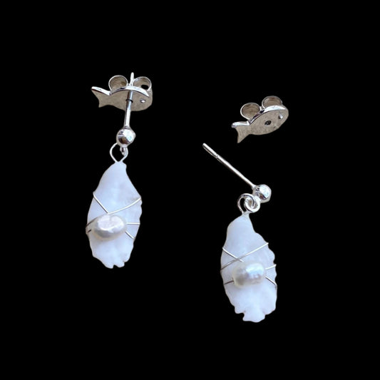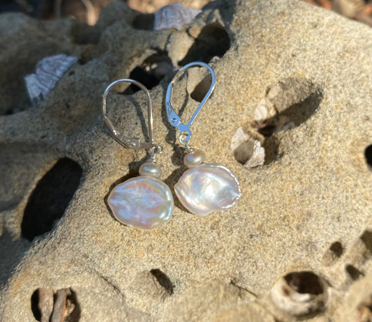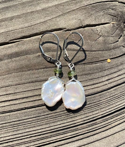 Keshi Pearl with Semi-precious Stone Earrings - Sterling