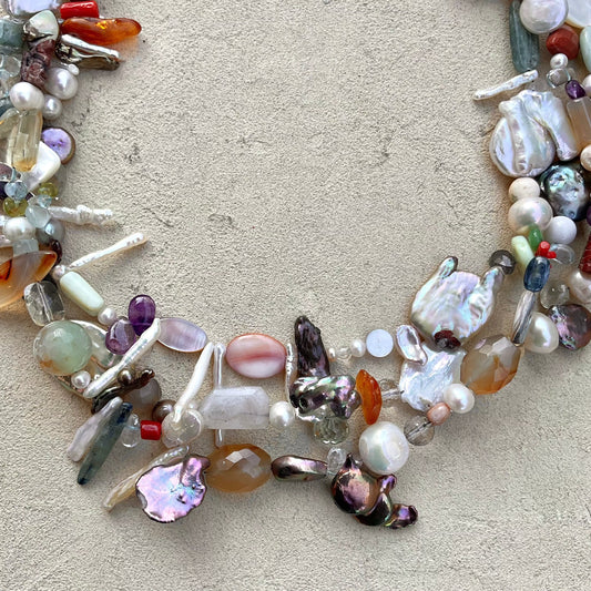 Biwa Pearls, Amethyst, Moonstone Earrings