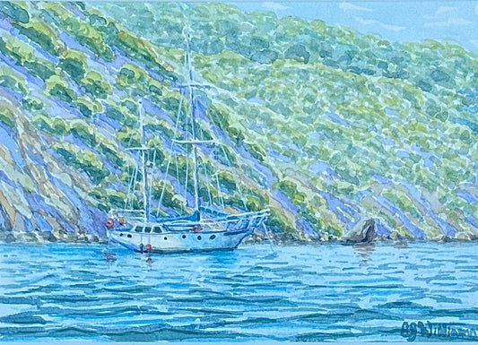 "Avalon Yacht Club" Original Watercolor and Ink Painting
